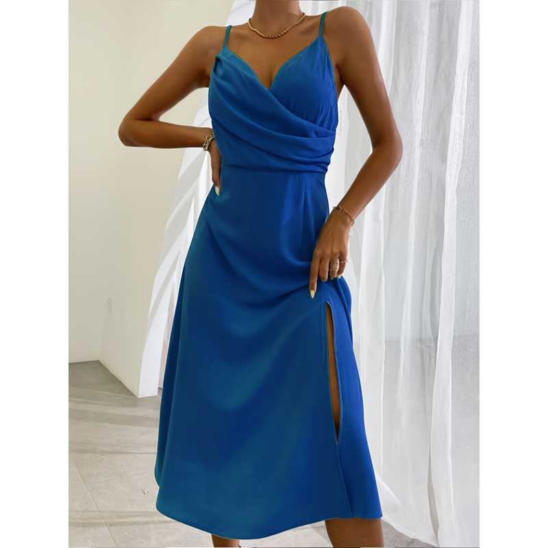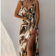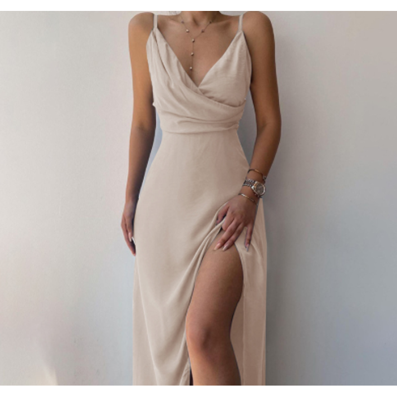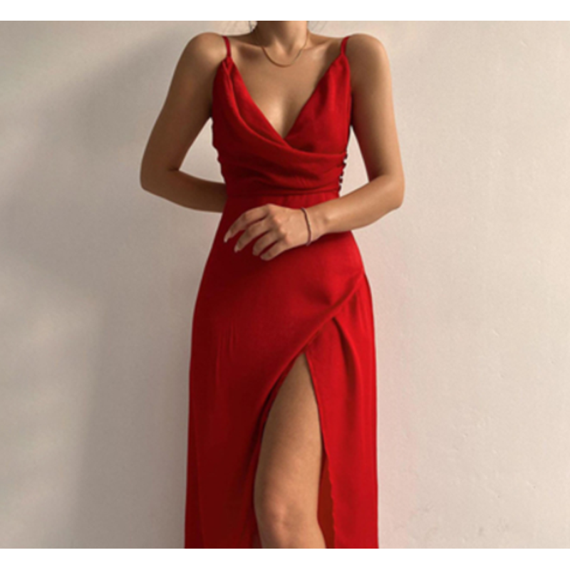V-neck Slit Sling Dress Summer Fashion Sexy Slim Suspender Dresses For Women Clothing Green 2XL