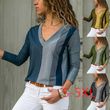 V-neck Striped Printed Long Sleeves T-shirt Brown 2XL