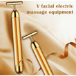 This V facial electric massage device is a luxurious skincare tool designed to tone, lift, and revitalize the skin. With a sleek gold finish and gentle micro-vibrations, it helps enhance blood circulation, promote collagen production, and sculpt the face into a more defined V-shape.