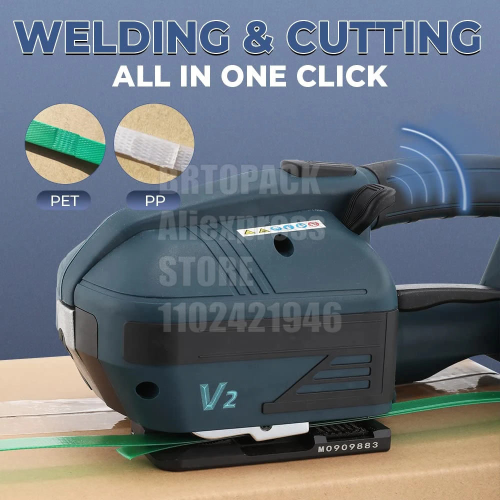 Rechargeable Battery Operated Plastic Strapping Machine V2 PET Strap Handheld Electric Strapping Tool Automatic Banding Machine