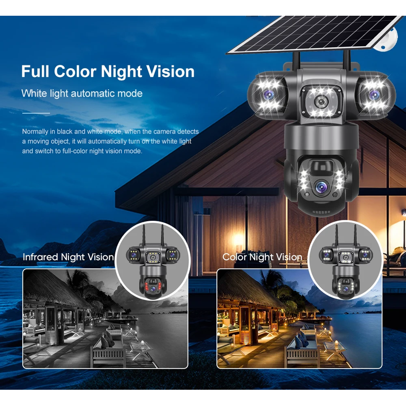 1.The camera can be detached with a large capacity battery, And solar panel is converted into energy by absorption and heat absorption to power the battery without connecting, the power supply easy to navigate.