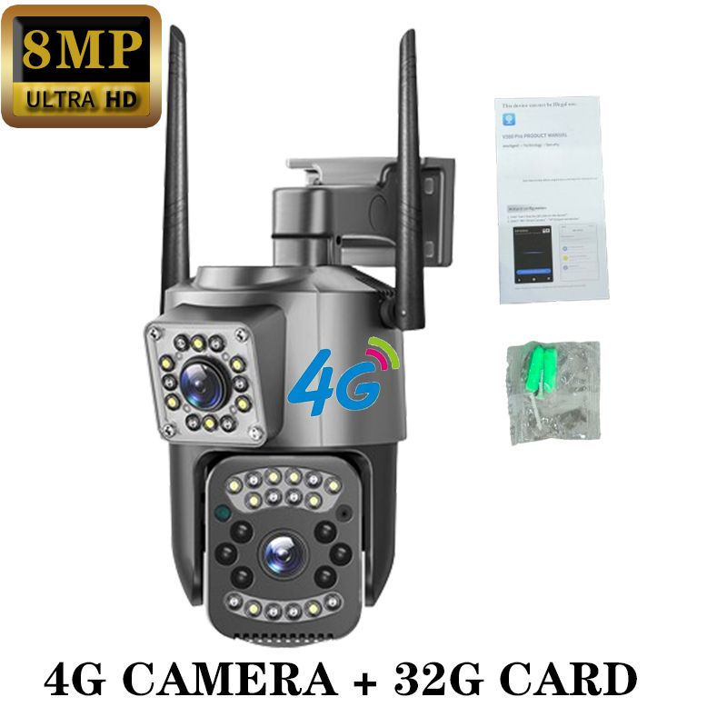 V380pro 8mp Dual Lens outdoor Camera 4G SIMCARD surveillance cameras night vision security protection waterproof camera outdoor