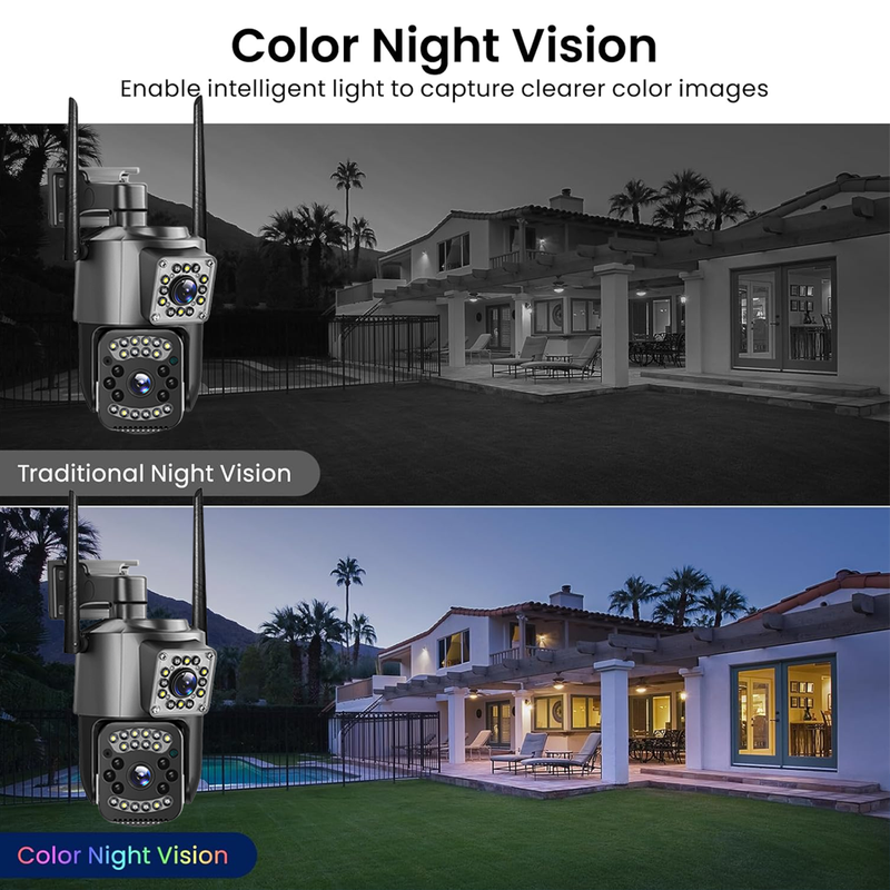 - Dual-lens dual-sensor dual-screen, wide-angle Viewing + Long Distance Viewing to achieve clear monitoring from far and near;