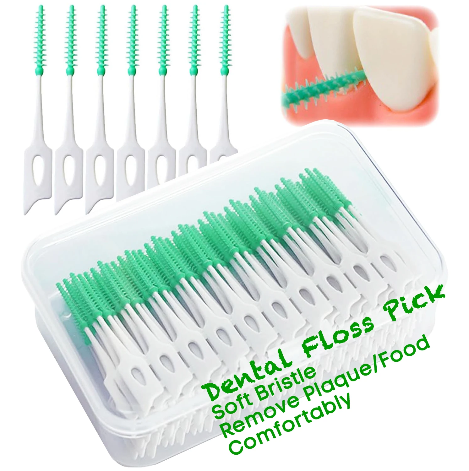 Vaclav 150Pcs Original Dental Floss Pick Soft Silicone Bristle Interdental Brush Dental Pick Brace Brush Disposable Teeth Clean