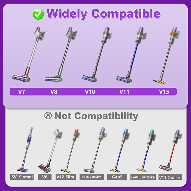 Enhanced compatibility: Designed for Dyson V7, V8, V10, V11 and V15 models, this soft roller brush head will improve the efficiency of your vacuum cleaner. It is a perfect replacement for the floor brush head of Dyson V7 V8 V10 V11 V15, ensuring a seamless fit and improved performance.