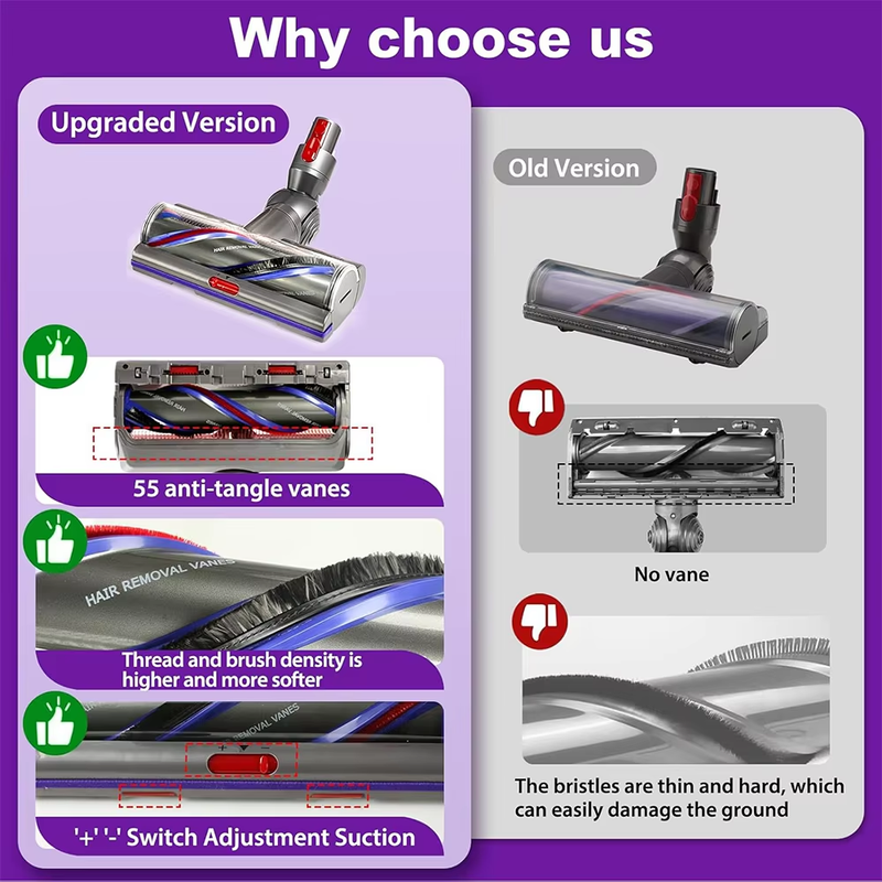 Optimized performance: Designed specifically for Dyson vacuum cleaners, this high-torque brush head can adapt to different types of floors for a deeper clean. Its smart motor enhances suction to remove dirt from all surfaces.