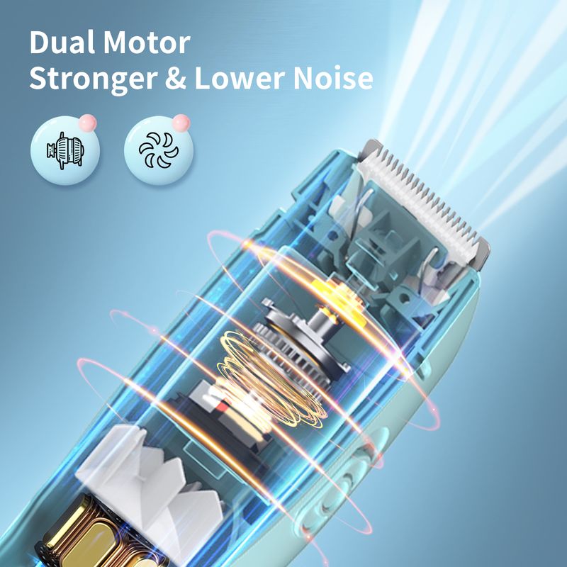 1.【Electric Hair clippers with Dual-Motor Design】 One motor driving the blade and another powering the fan for superior suction. Control the fan independently, allowing you to choose between normal mode or vacuuming mode while you do the haircut. When you do hair cut for your kids, making your baby not feel uncomfortable. When adults use it to do hair cut, the normal mode is better.