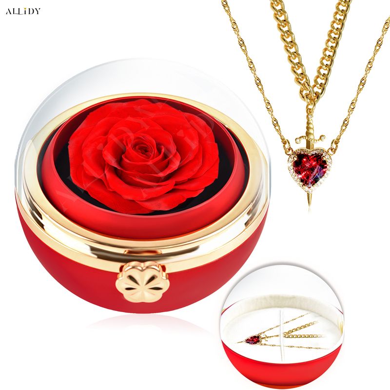 Product Name: Rotating Rose Flower Jewelry Box Necklace Set