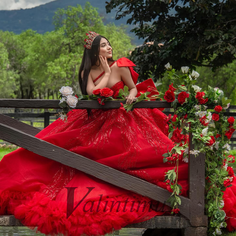 Valintimu Exquisite Ball Gown Quinceanera Dress for Girl Big Bow Lace Appliques Brush Train Robe Princess Bleu Femme Customized