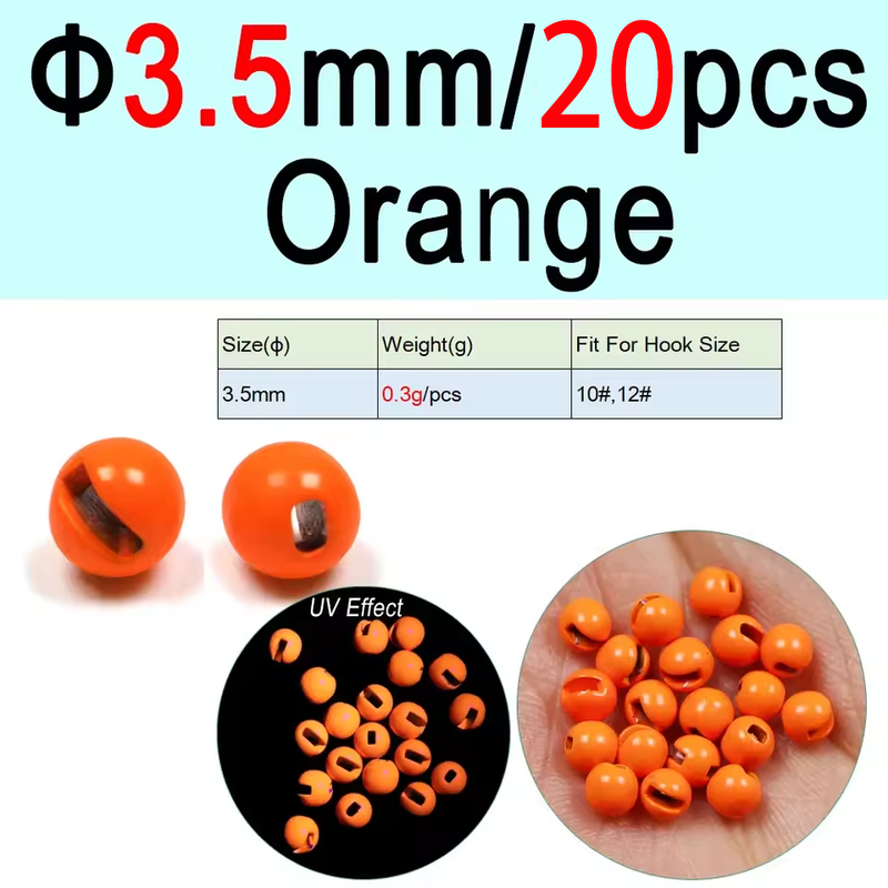 Vampfly 20pcs Slotted Tungsten Beads Jig Beads For Jig Nymph Wet Euro Nymphs Ice Fishing Scud Worm Fly Trout Fishing Lure Baits