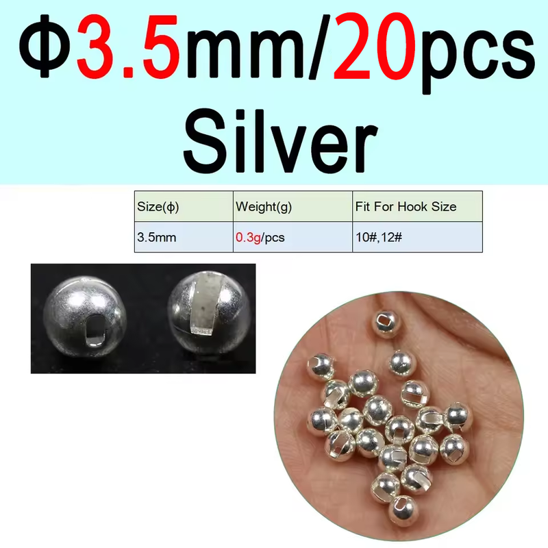 Vampfly 20pcs Slotted Tungsten Beads Jig Beads For Jig Nymph Wet Euro Nymphs Ice Fishing Scud Worm Fly Trout Fishing Lure Baits