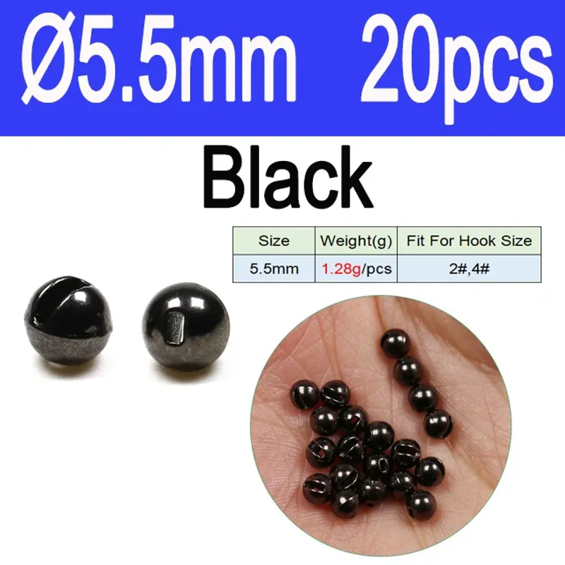 Vampfly 20pcs Slotted Tungsten Bead Jig Beads For Tying Fast Sinking Jig Nymph Fly Trout Fishing lures Accessories Beadheads 2.5mm 2.8mm 3mm 3.5mm,4.0mm,4.6mm,5.5mm