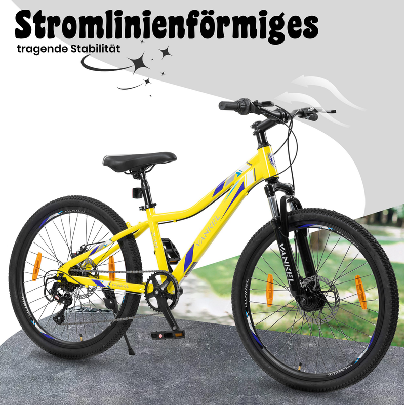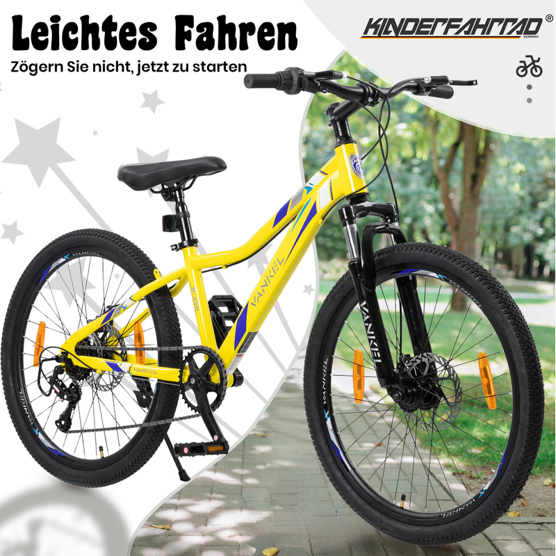 The frame gives this bike a sporty design that boys and teenage girls will love. The Lauxjack has a frame height of 32 cm, making it suitable for children between 130 cm and 160 cm tall . The body is made of high-quality materials and is robust and stable , with a load capacity of up to 120 kg . The mountain bike comes in a stylish and eye-catching color scheme . The bright yellow bike frame represents youthful energy and liveliness. Lauxjack children's bikes are delivered 85% pre-assembled , so parents can quickly and easily assemble their child's first bike before the first ride.