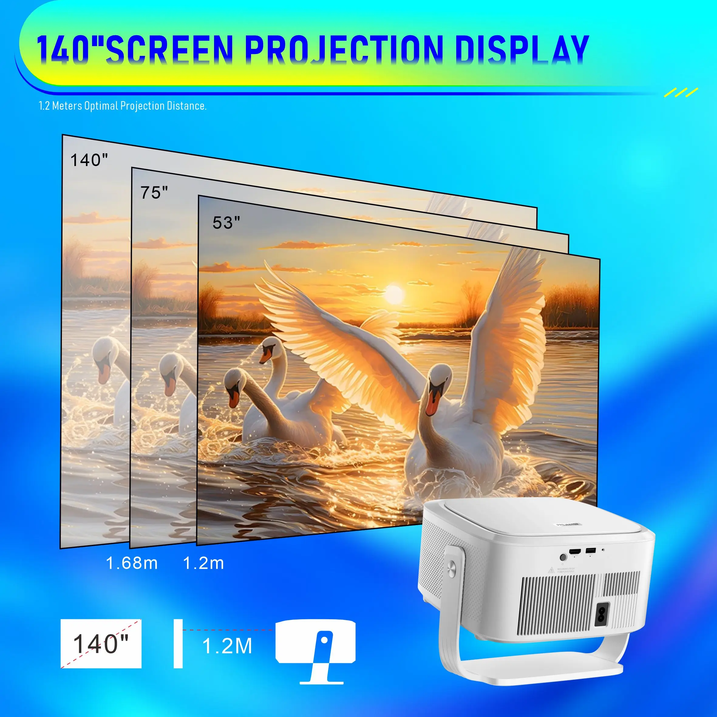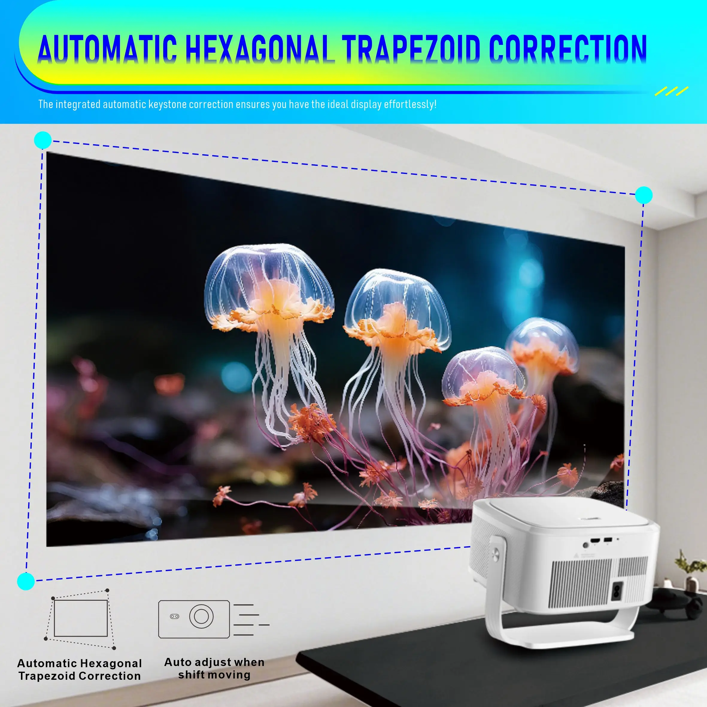 Velec 1100ANSI HY450 Max Auto Focus Projector 8K 1080P Android 14 Voice Control BT5.4 Auto Offset Home Theater For Outdoor