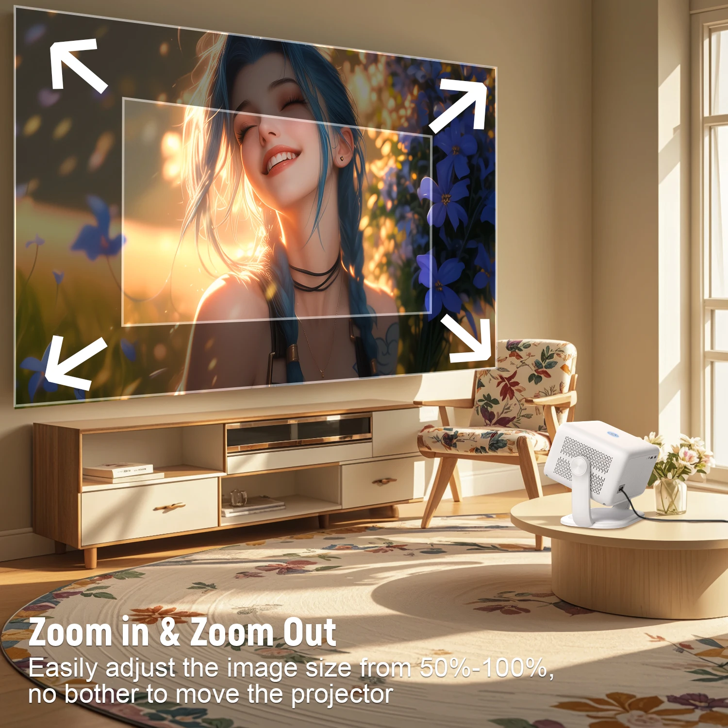 Easily adjust the image size from 50%-100%.no bother to move the projector