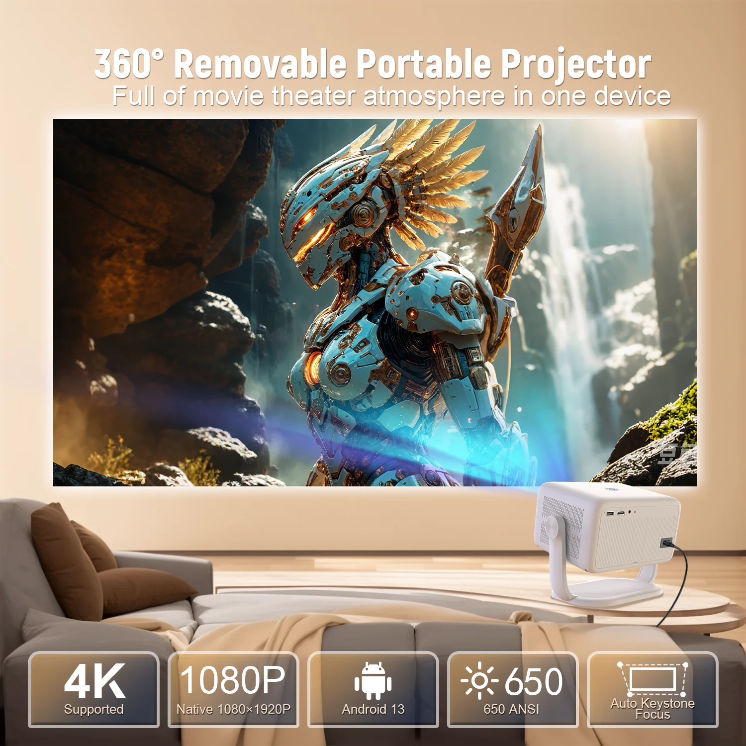 Velec TP350 Projector Android 13 650ANSI 4K Native 1080P Projector Auto Focus Home Theater Cinema Portable Projector for Outdoor