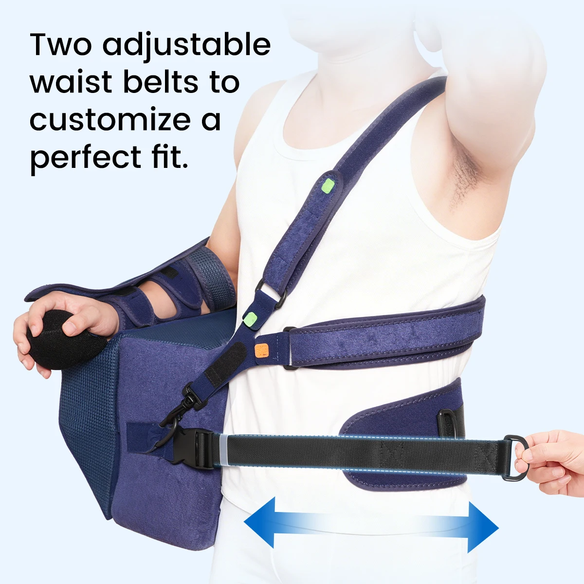 【COMFORTABLE AND ADJUSTABLE】Adjustable shoulder strap, chest strap, and waist belt for personalized fit and optimal positioning of the upper extremity.