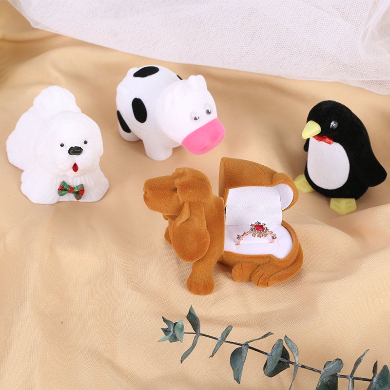 Velvet Jewelry Box Organizer Cute Animal Wedding Ring Box Fruit Storage Case Earring Necklace Display Packaging Gift Accessories