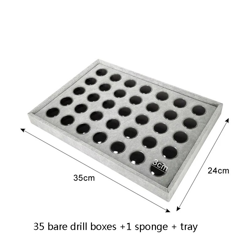 Velvet Jewelry Display Tray with 35 Gem Jars Insert,Acrylic Transparent Diamond Box Detachable Pad Tray,Collectibles Organizer