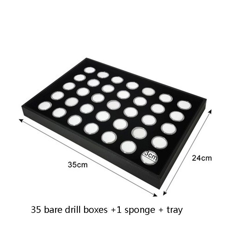 Velvet Jewelry Display Tray with 35 Gem Jars Insert,Acrylic Transparent Diamond Box Detachable Pad Tray,Collectibles Organizer