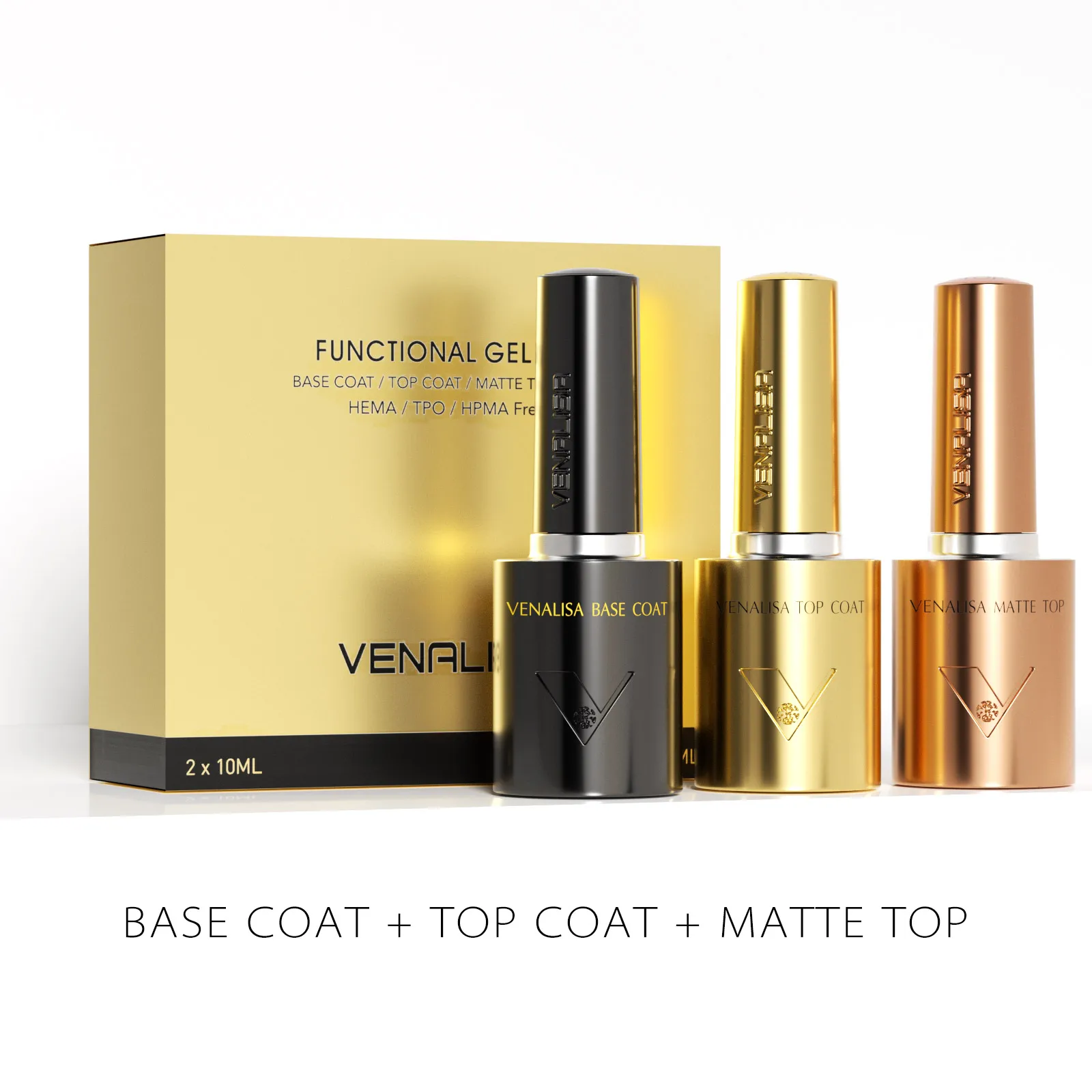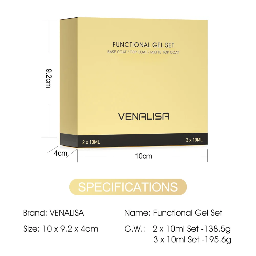 Venalisa 10ml 1/2/3pcs Kit Nail Gel Polish Hema/TPO Free Base Ultra Tempered Long Wear Matte Top Coat Top Gel Varnish UV LED Gel