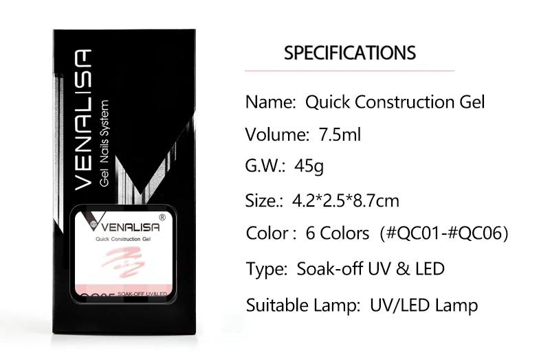 VENALISA 7.5ml Quick Construction Gel Semi Transparent French Nail Fast Building Nail Gel Jelly Camouflage Soak Off UV LED Nail