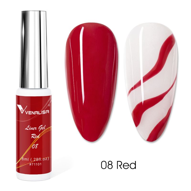 VENALISA Liner Gel 8ml 21 Colors - Nail Art Painting Gel with Fine Brush for French Tips, Line Drawing, Glitter & Neon Nail Des