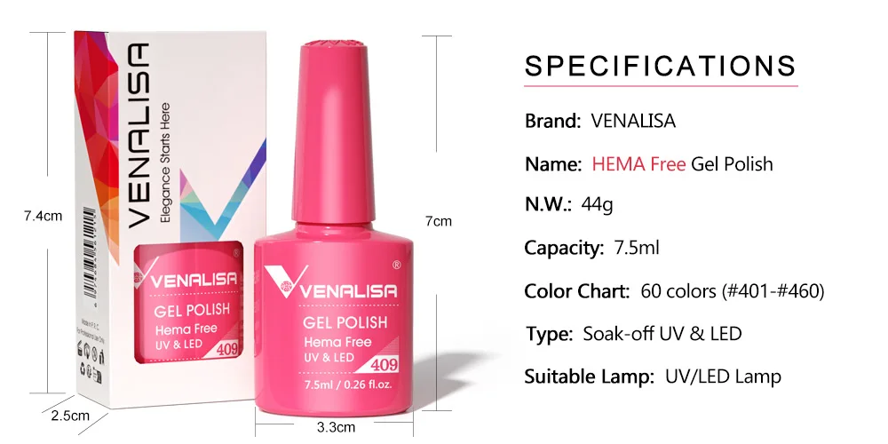 Venalisa Nail Gel Polish HEMA FREE No TPO 7.5ml Summer Nails Soak Off UV LED Gel Varnish Full Coverage Gorgeous Color Manicure