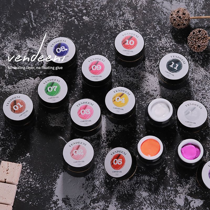 Vendeeni 12 Color Carved Gel Nail Polish DIY Plasticine UV LED Gel Varnish 3D Modeling Sculpture Gel Lacquer For Nail Art Design