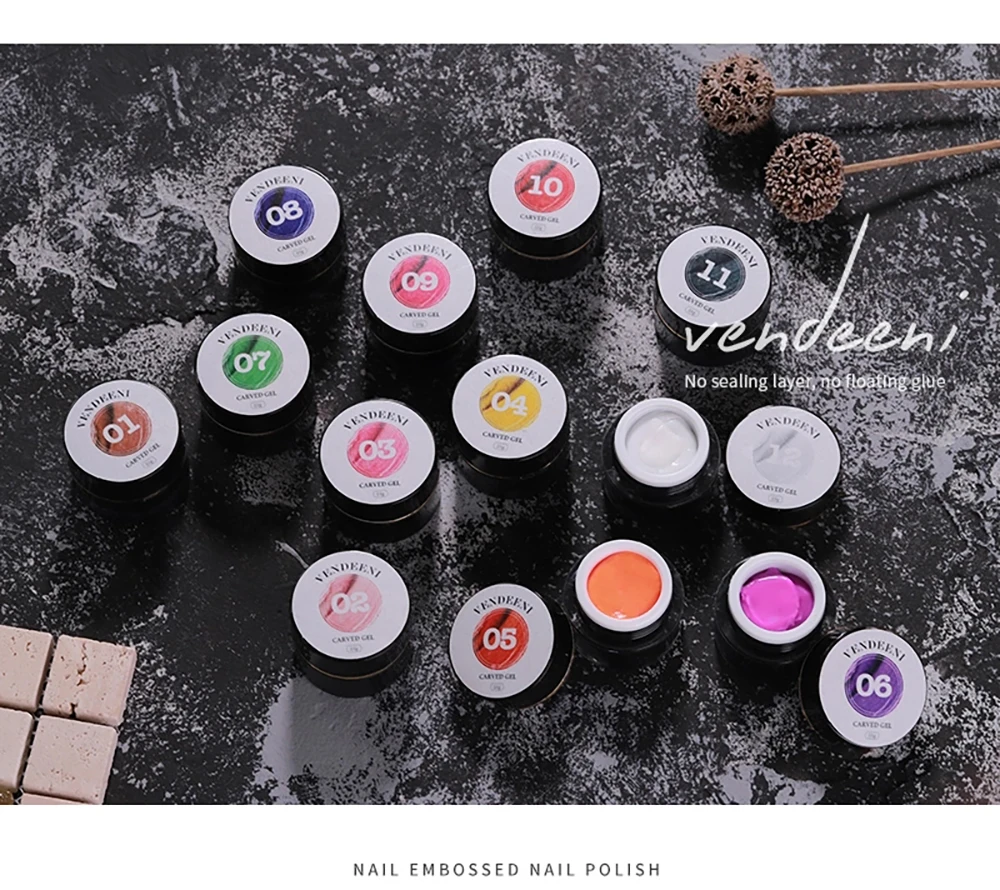 Vendeeni 12 Color Carved Gel Nail Polish DIY Plasticine UV LED Gel Varnish 3D Modeling Sculpture Gel Lacquer For Nail Art Design