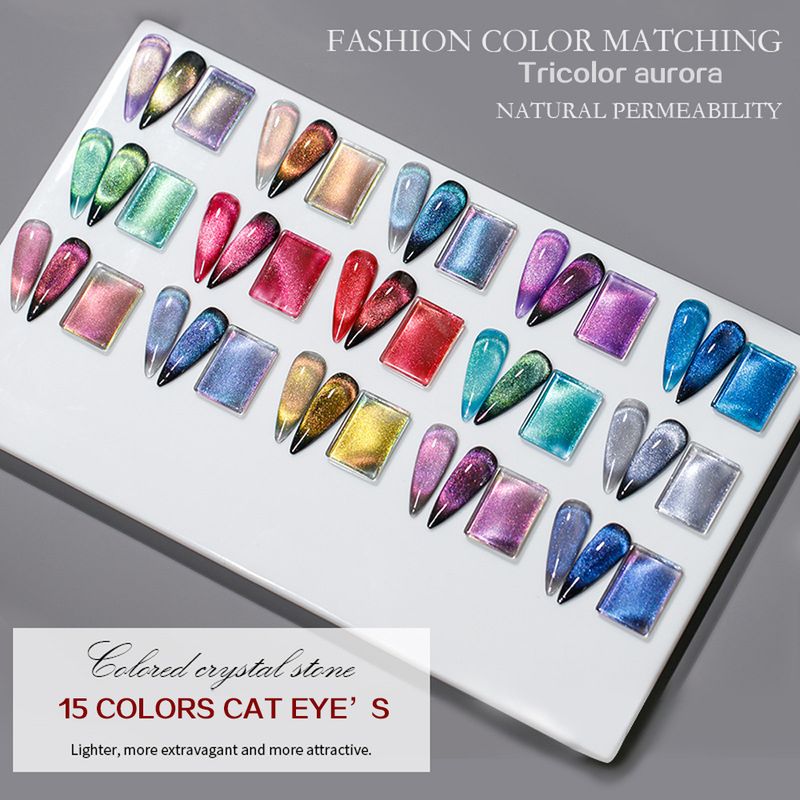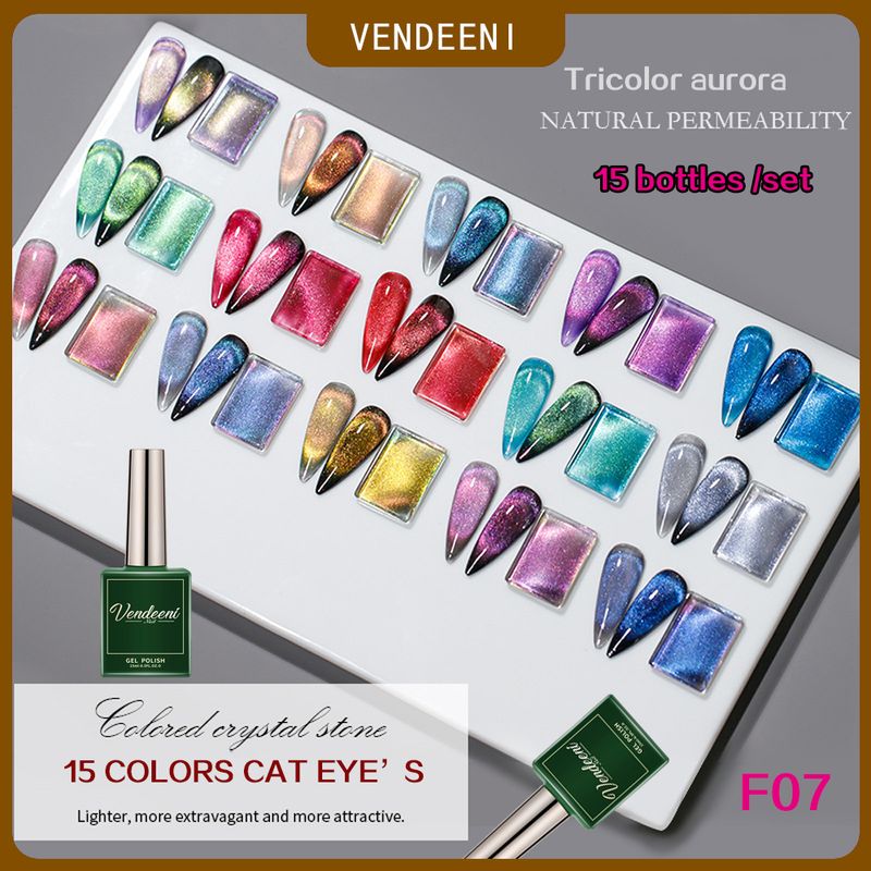 Vendeeni 15 Colors/set Colourful Crystal Aurora Cat Eye Gel Nail Polish Magnetic Gel Varnish UV LED Soak Off Gel Lacquer