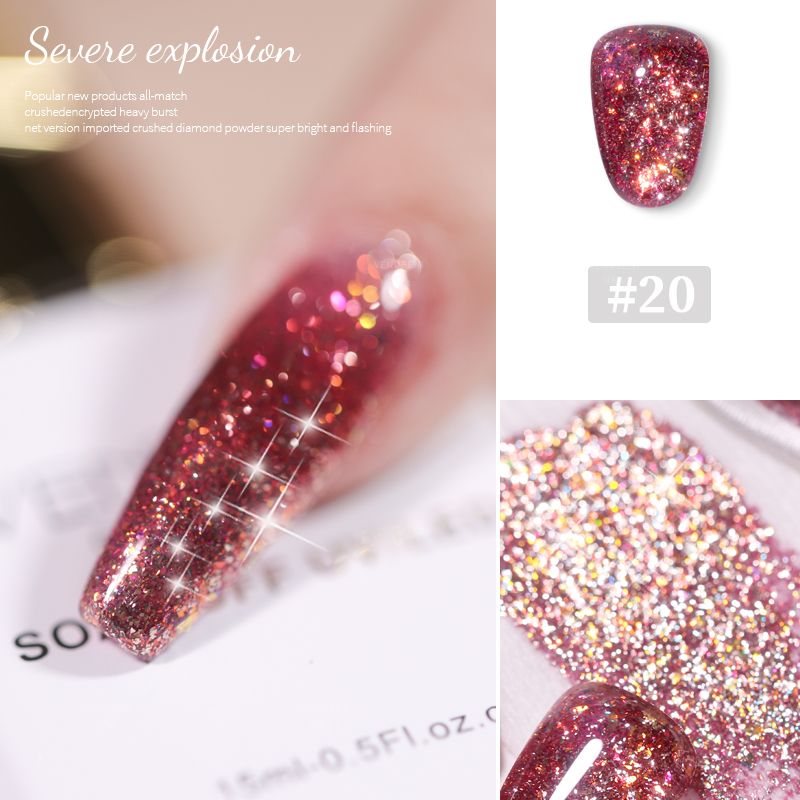 Vendeeni 24 Colors High Density Glitter Nail Gel Polish Explosive Flash Nail Art Gel Varnish Sparkling UV Soak Off Gel Lacquer