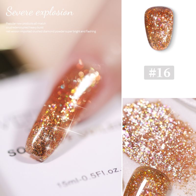 Vendeeni 24 Colors High Density Glitter Nail Gel Polish Explosive Flash Nail Art Gel Varnish Sparkling UV Soak Off Gel Lacquer