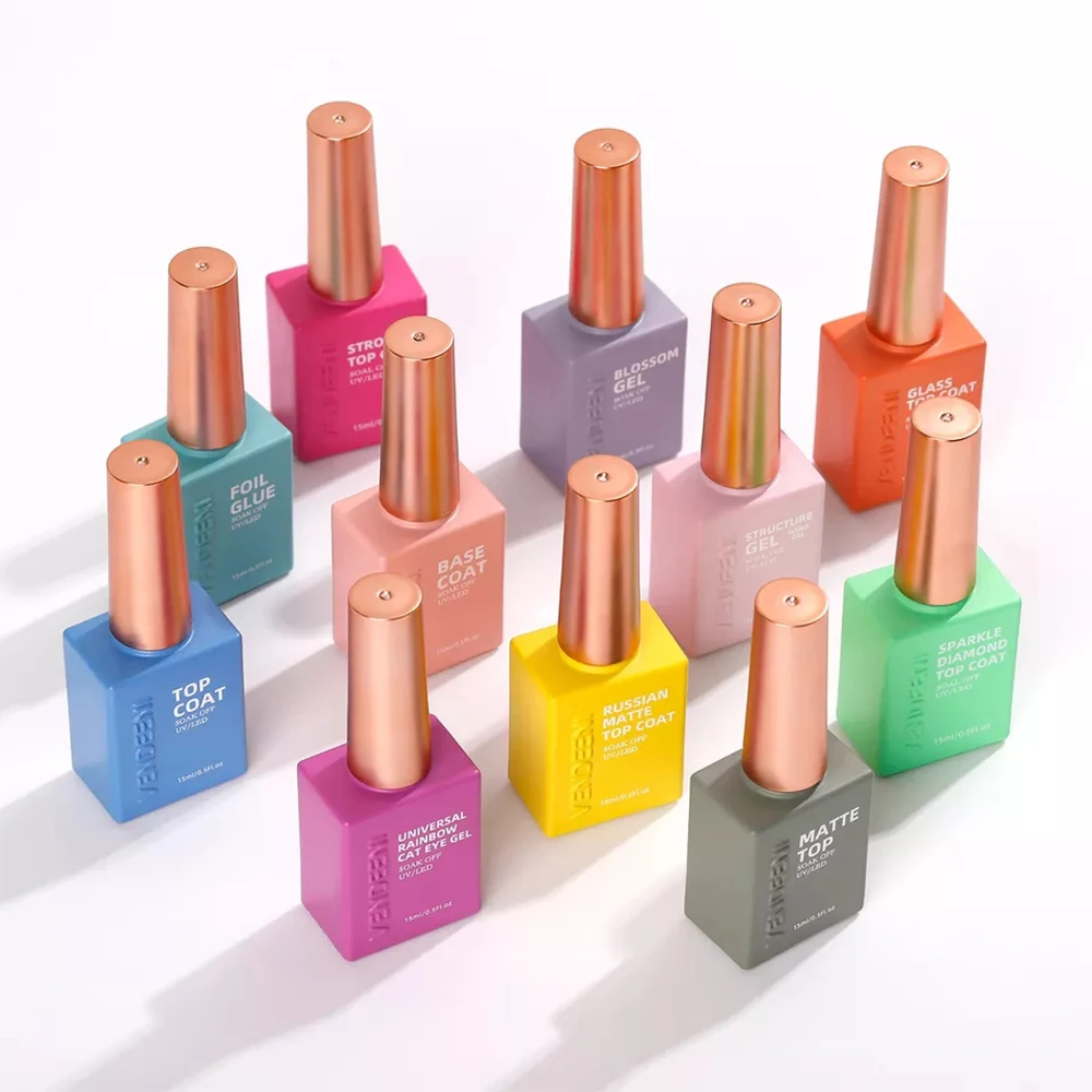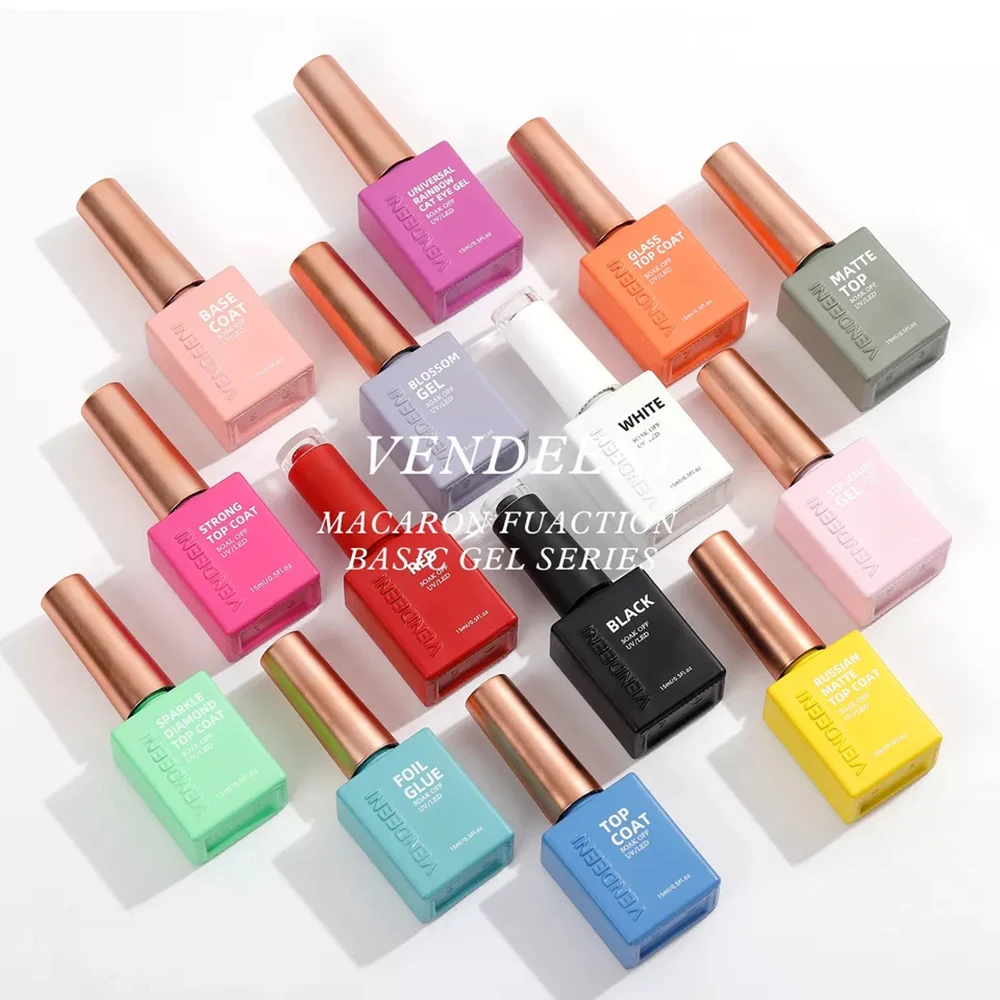 Vendeeni 27 Kinds UV Functional Gel Nail Polish Top Coat Base Coat Mirror Gel Builder Gel Cat Eye Gel Pure Color Gel Black White