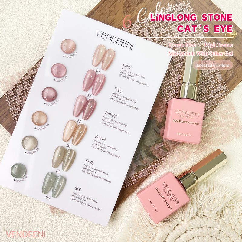 Vendeeni 6 Colors Magnetic Cat Eye Gel Nail Polish Set Pink UV LED Soak Off Gel Varnish Crystal Cat Eye Gel Lacquer With Display
