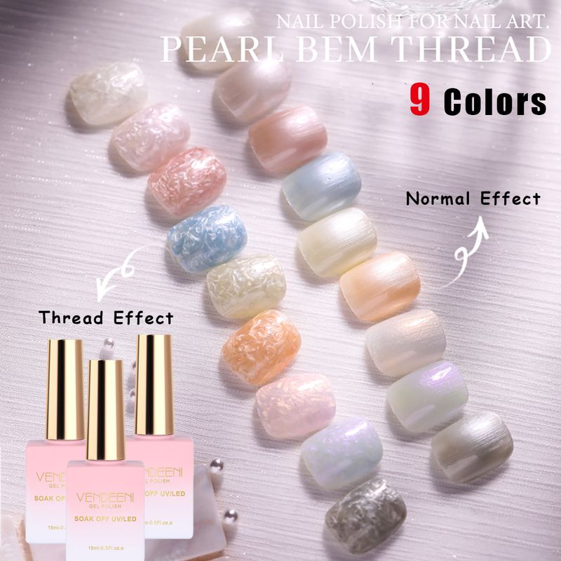 Vendeeni 9 Colors Pearl Shell Thread Gel Nail Polish UV Soak Off Gel Varnish DIY Shell Thread Pattern Gel Lacquer For Manicure
