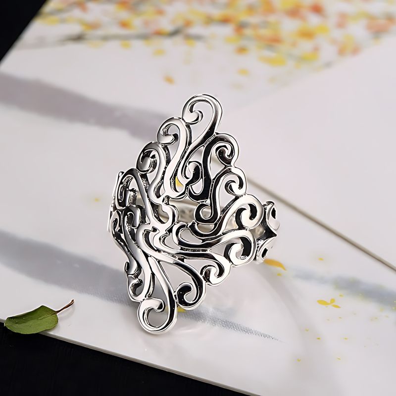 VENTFILLE 925 Sterling Silve Flower Ring for Women Gift Hollow Out Design Retro Hip Hop Versatile Jewelry Party Gift Dropship