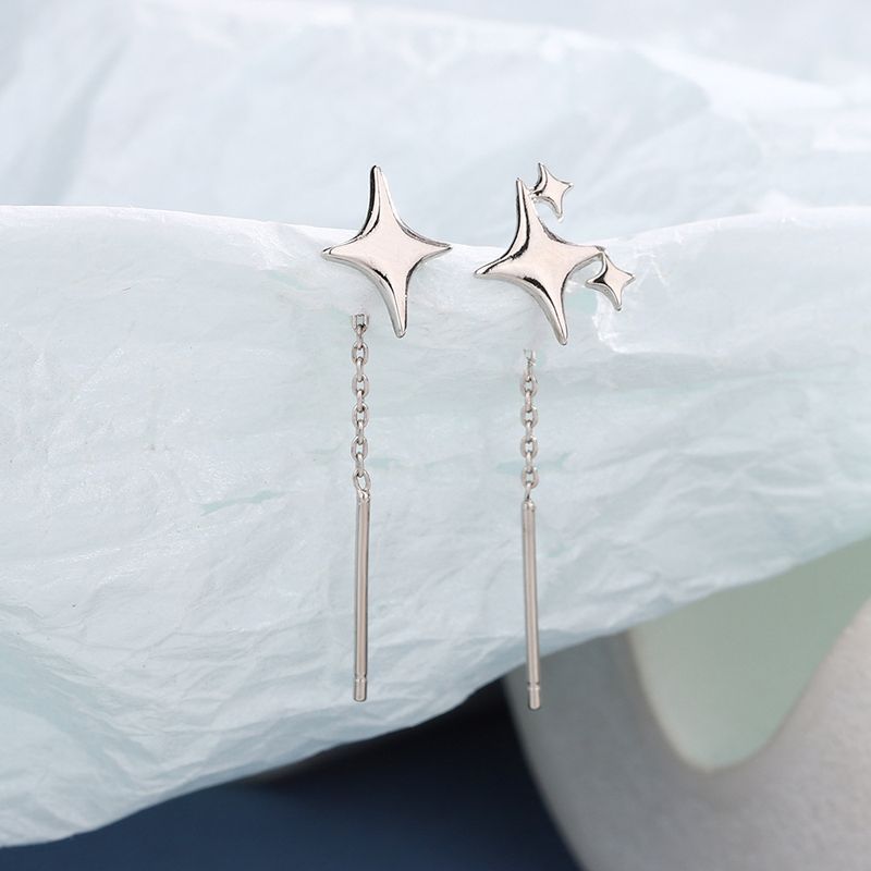 Ventfille 925 Sterling Silver Star Earring for Women Girl Simple Tassels Chain Fashion Office Jewelry Gift Dropshipping