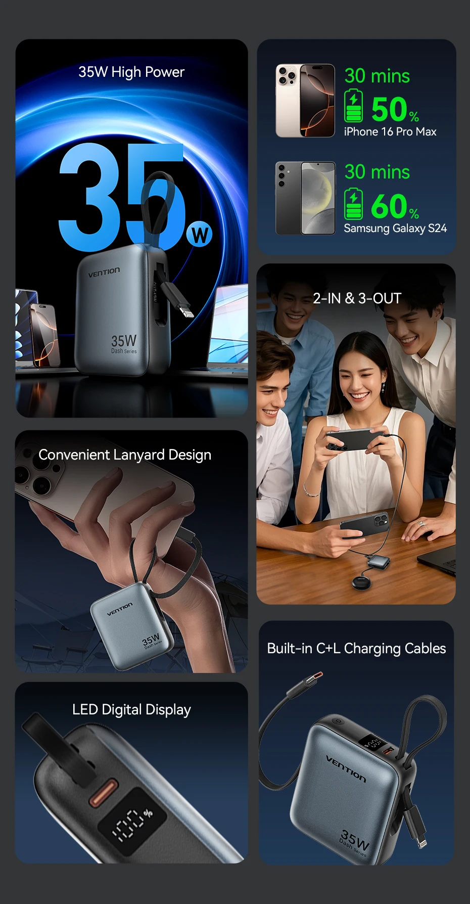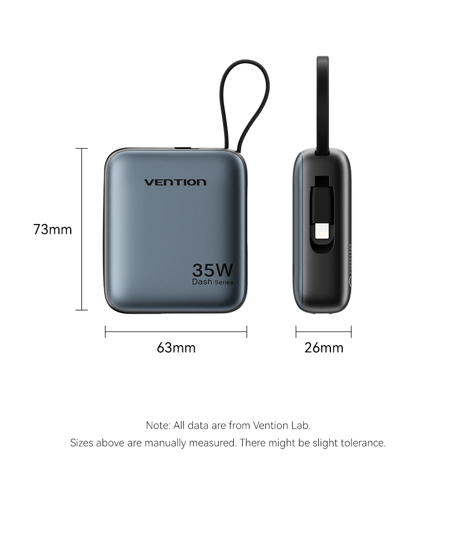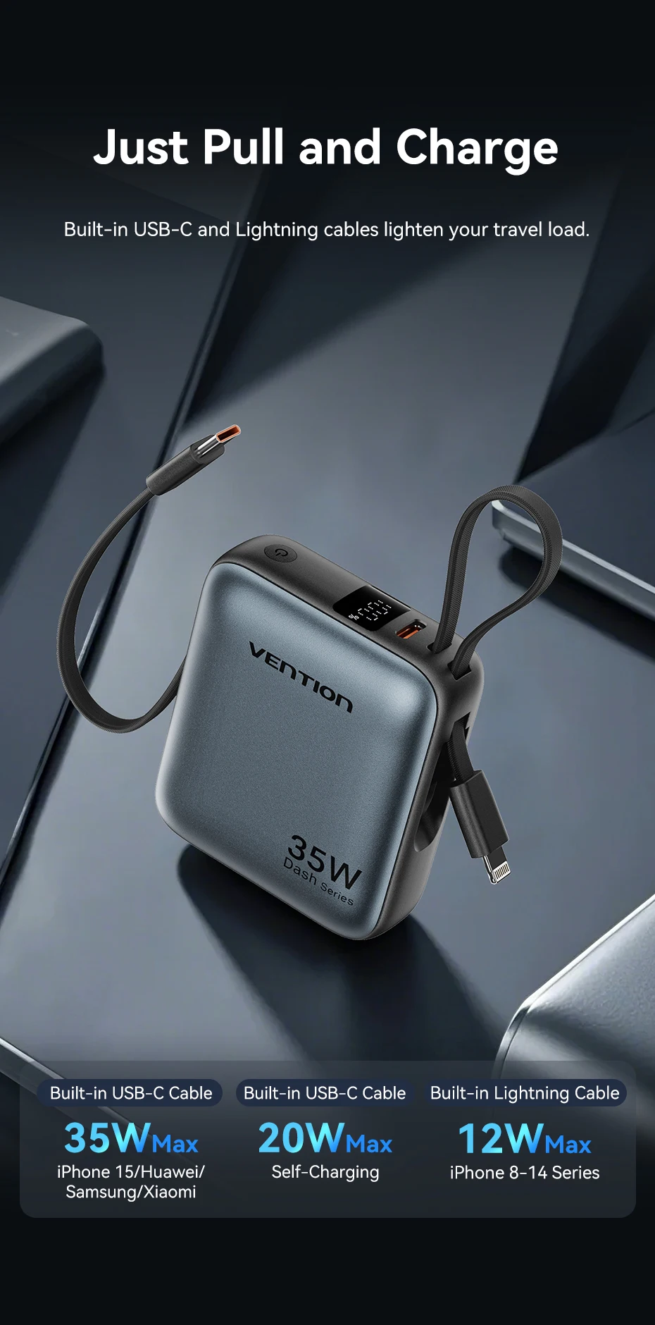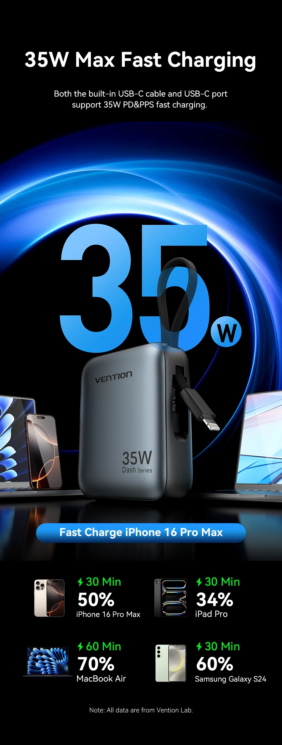 Both the built-in USB-C cable and USB-C portsupport 35W PD&PPS fast charging.