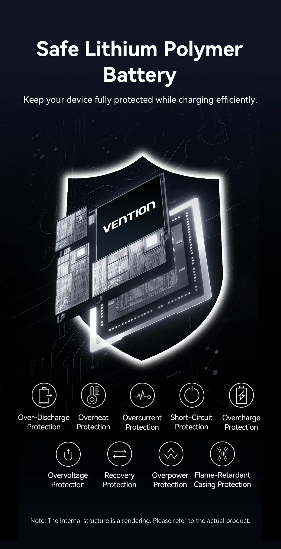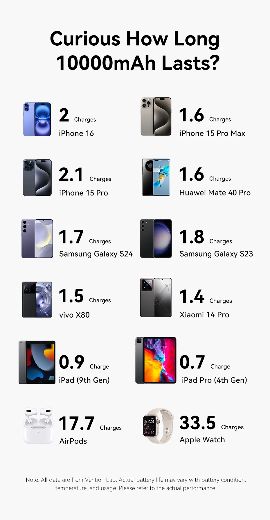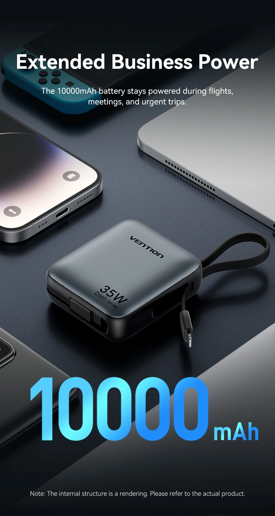 The 10000mAh battery stays powered during flights,meetings, and urgent trips.