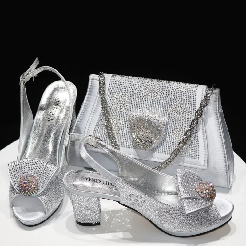 Venus Chan 2024 Italian Design Girly Style Golden Color Wedding Shoes And Bag Full Diamond Decoration Metal Closure Bags
