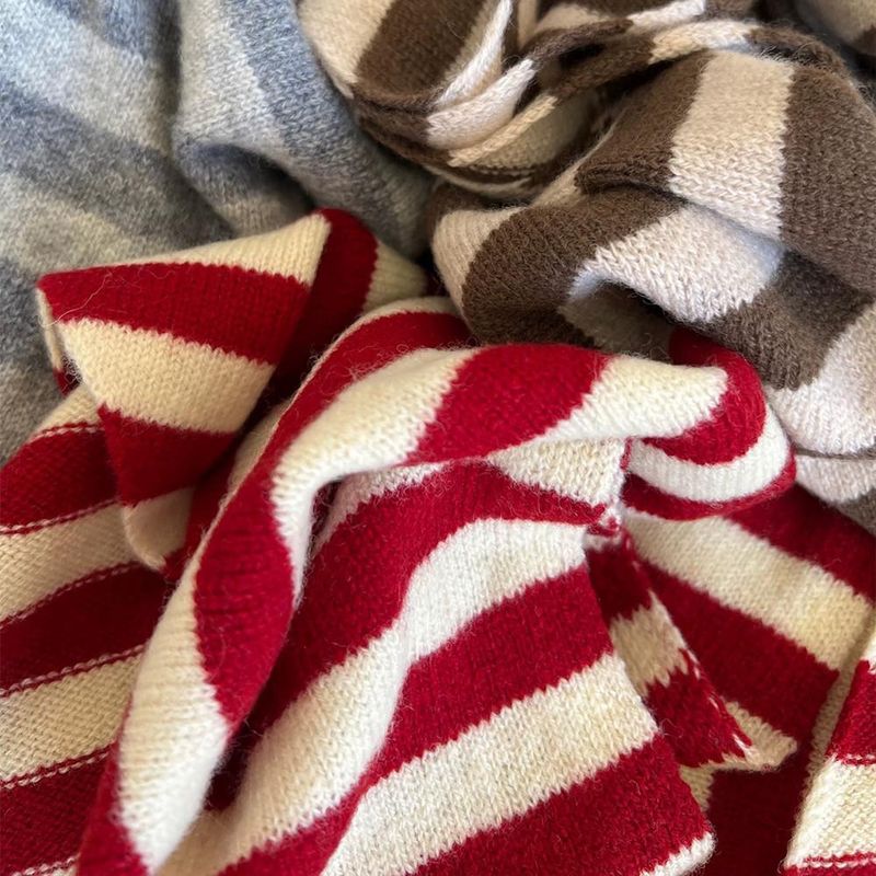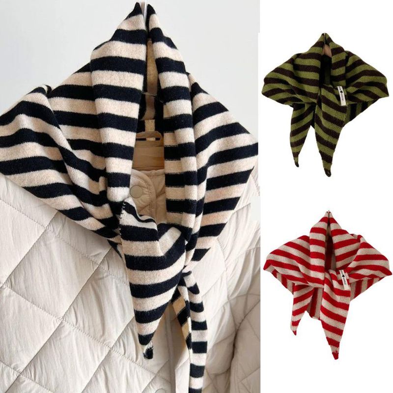 Versatile Striped Wool Knitted Triangle Scarf Women Fashion Wool Scarf Shawl Winter Warm Soft Knitted Hood Scarf Shawl Neck Wrap