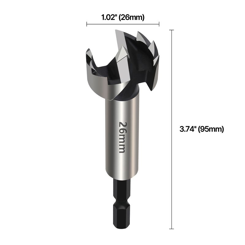 Versery 1Pc 6-40mm Forstner Woodworking Tools Hole Saw Hinge Boring Drill Bits 1/4"(6.35mm) Hex Shank High Carbon Steel Cutter