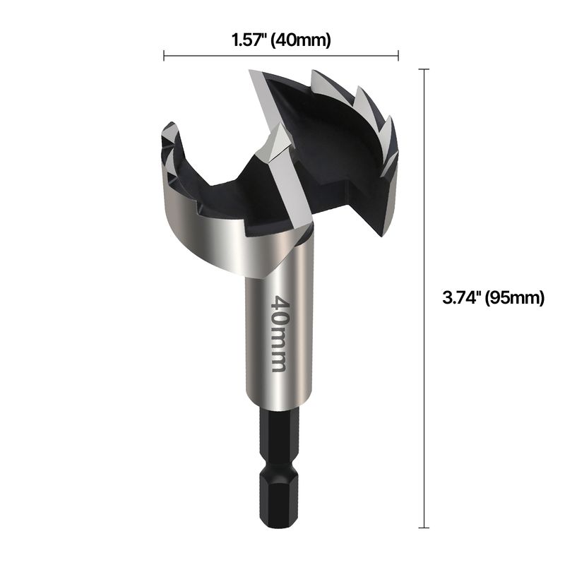 Versery 1Pc 6-40mm Forstner Woodworking Tools Hole Saw Hinge Boring Drill Bits 1/4"(6.35mm) Hex Shank High Carbon Steel Cutter