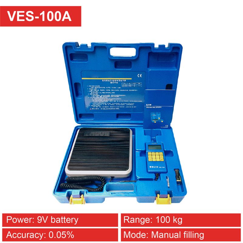 VES-50A 100A 50B 100B Refrigerant Scale for HVAC 50/100kg Manual Quantitative Filling ±0.05% LCD Backlight DC9V