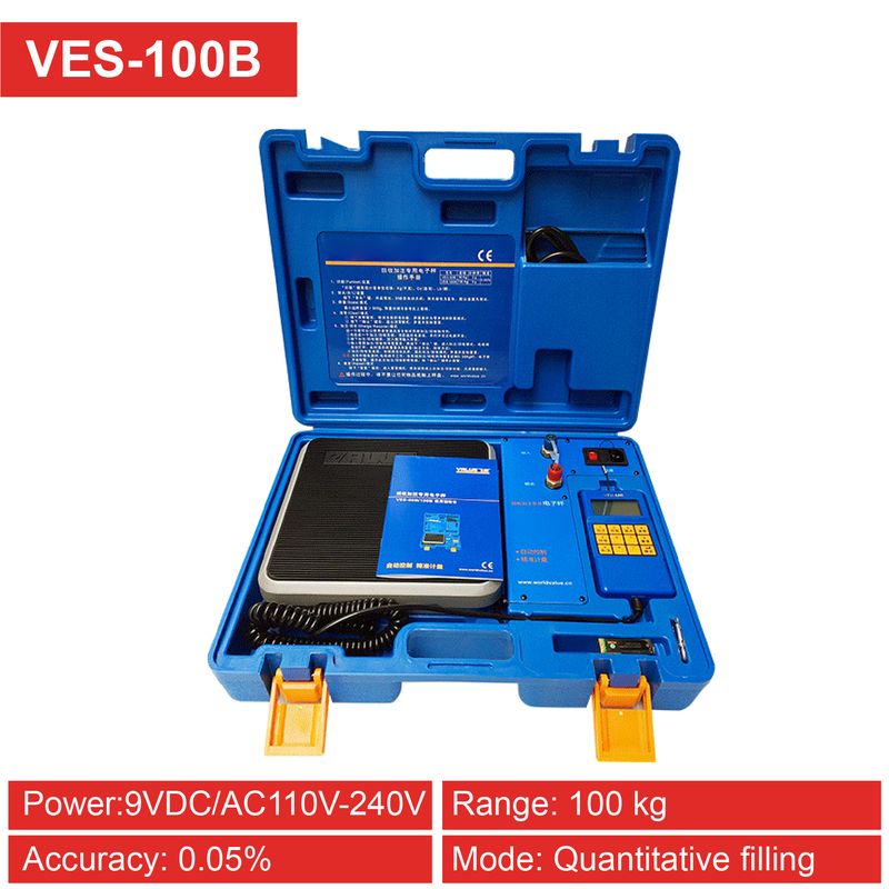 VES-50A 100A 50B 100B Refrigerant Scale for HVAC 50/100kg Manual Quantitative Filling ±0.05% LCD Backlight DC9V