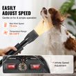 • Adjustable Wind Speed: Achieve a maximum wind speed of 70m/s, allowing you to adjust the airflow to different furry friends' needs. For thick, long-haired, or larger dogs, high-speed airflow quickly dries their fur from the inside out, while lower speeds ensure a gentle drying experience for sensitive or small dogs.