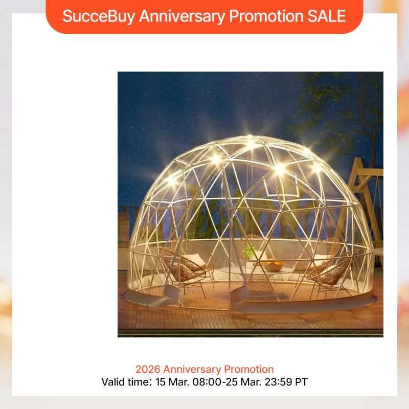 • Reinforced Fastener: The geodesic dome kit adopts a φ 0.63”/16 mm nylon frame, providing extra stability with the help of 10 sandbags,32 expansion screws w/ fastener, and 15 aluminum alloy stakes. It can withstand up to 31 mi/h speed wind and bear max. 90 lbs snow. Feel at ease when you start your next big camping adventure, even on windy days.