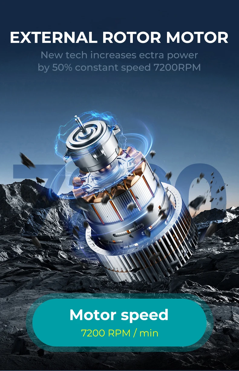 ★ Outer-Rotor Brushless Motor: Delivers powerful, quiet, and long-lasting performance with minimal heat and friction.