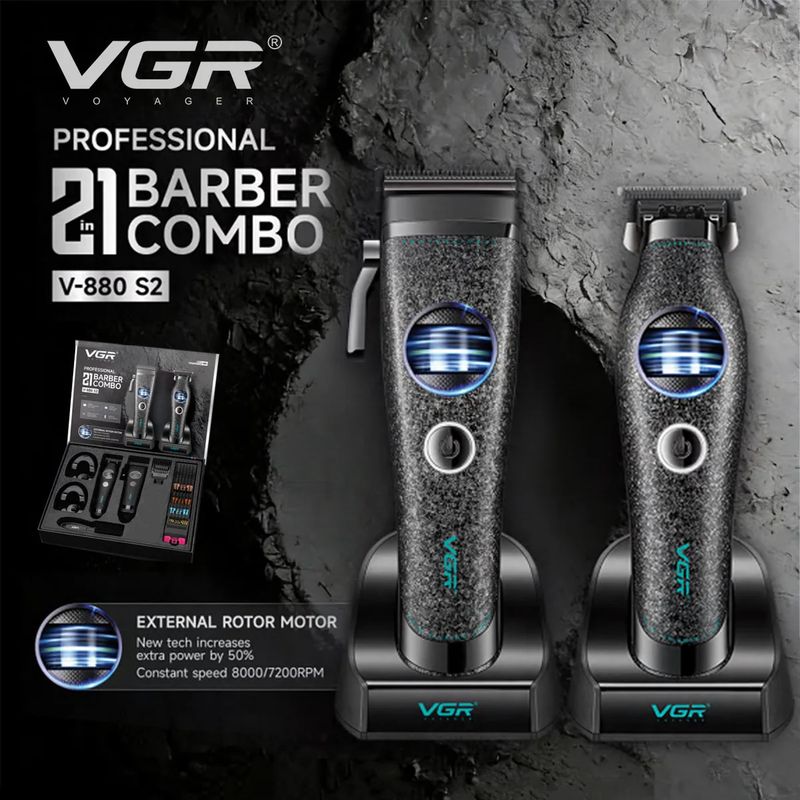 VGR Clipper Professional Hair Cutting Machine External Rotor Motor Barber Hair Trimmer Cordless Haircut Clipper for Men V-880C